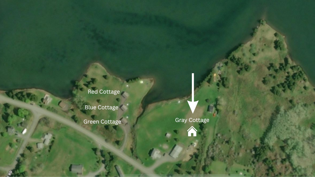 We are located between Port Hawkesbury and St. Peters. Going East on the 104 take exit 46. You will continue straight ahead on HWY 320. Pass over a bridge and a few minutes later keep left at the intersection. Keep going on HWY 320 and you'll pass the Groundswell Pub then the Yacht Club and you will still need to go straight. You will come to a sharp right turn but keep going straight up the hill to Cap La Ronde Road. Cottage is at 619 Cap La Ronde Road located behind our home.